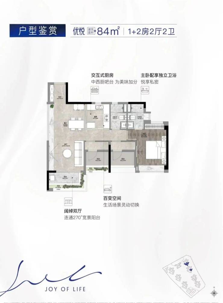 其中84㎡3房2卫可以重点考虑。LDK一体化,通透明亮;主卧套房设计,生活更加从容便利。