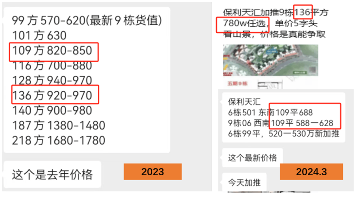 如天河的保利天汇,有中介介绍,109方户型去年卖820-850万,现在东南向卖688万,西南向588-628万,最高直降200多万!136方户型去年卖920-970万,现在780万任选!最高直降190万!对比去年价格直接打骨折!