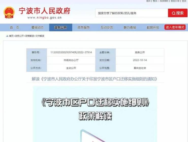 这几天,宁波市人民政府办公厅印发了《宁波市区户口迁移实施细则》,并发布了相关解读。