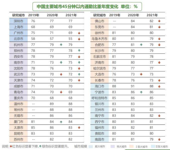 《报告》认为,提高“45分钟以内通勤比重”是改善城市人居环境的重要目标,是城市规划和交通服务水平的综合体现。