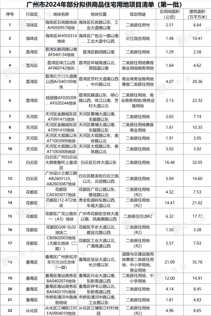 万众期待的2024年的广州首批宅地拟供地清单终于来了!
