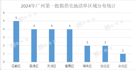 此次供地清单中包含了22宗宅地,在区域分布上,花都以5宗位居全市第一,占比达到23%,荔湾、天河、番禺均以4宗紧随其后,占比均为18%。