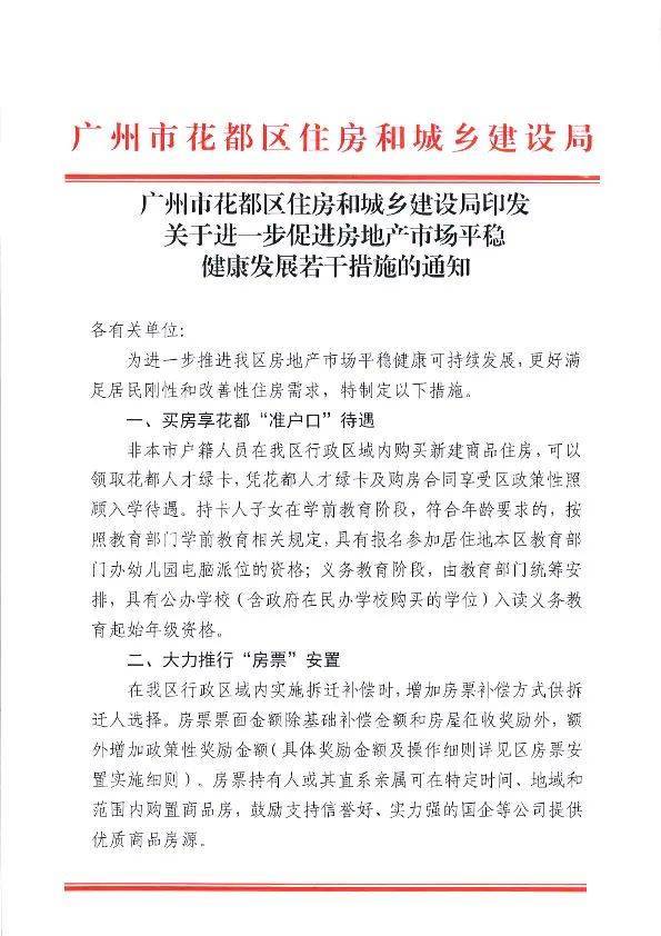 花都区住房和城乡建设局发布《关于进一步促进房地产市场平稳健康发展的若干措施》,强调为进一步推进我区房地产市场平稳健康可持续发展,更好满足居民刚性和改善性住房需求,特制定以下措施: