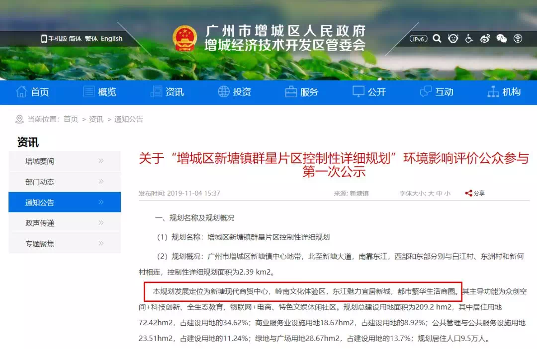 近日,广州市增城区人民政府官网就新塘群星片区发展正式公示了!