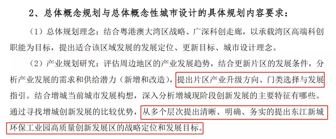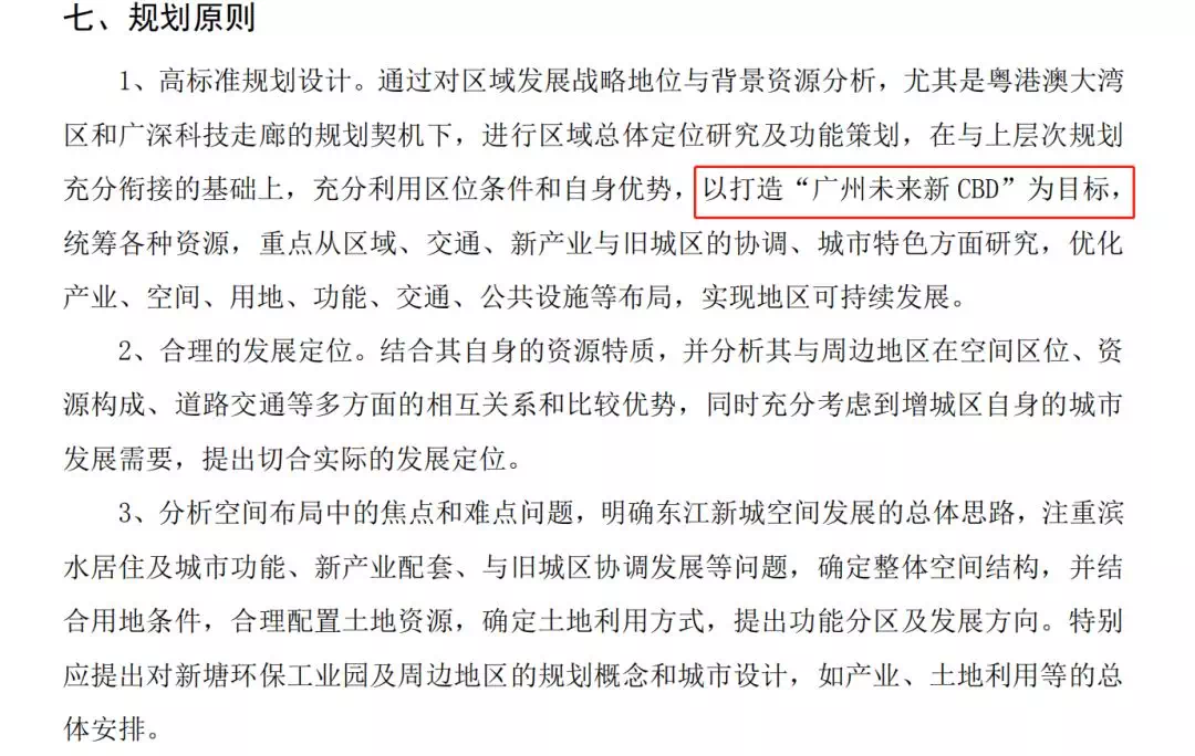 此外,招标中还提及到东江新城将以打造“广州未来新CBD”为目标,去规划设计,保证其可持续发展,优化新塘的产业方向。