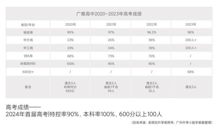 班级超叻:岭南班,中山大学上线率达到七成;985大学上线率超过九成;国际班毕业生100%被世界顶尖名校录取。(信息来源:广东广雅中学官网数据)