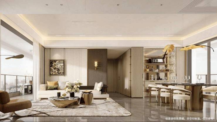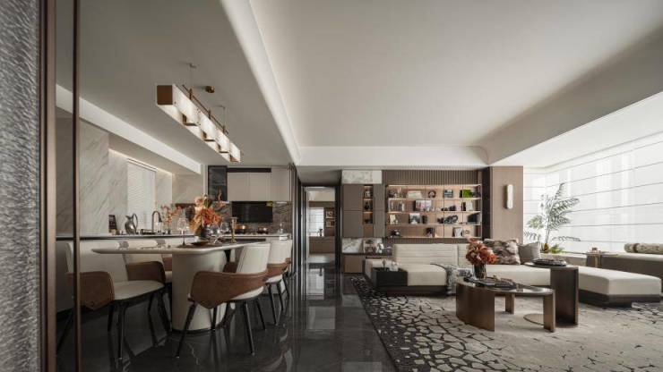 灵动LDKB一体化客厅,厨房-餐厅-客厅-阳台同一直线上的巧妙设计,隔阂消弭,满足全家人多种社交共融场景。
