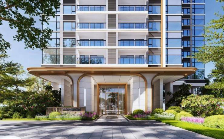 项目以高端豪宅标准尺度,打造约53米宽 约7米高定制奢阔门楼(北侧大门楼),让业主每一次回家,都能体验尊崇的归家礼仪,约8米入户大堂(6、7号楼),气场和排面拉满。