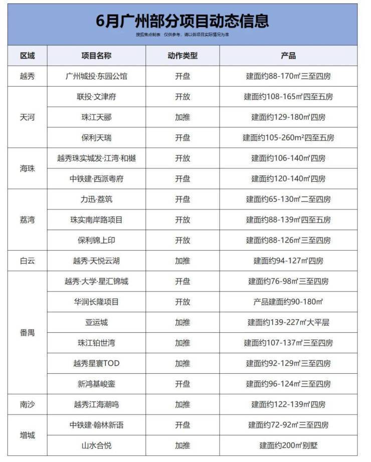 此外,亚运城预计加推天逸组团3栋,涉及建面约139-227㎡的大平层产品;珠江铂世湾预计加推A2-2栋,户型为建面约107-137㎡三至四房;越秀星寰TOD预计加推6栋,涉及建面约92-129㎡三至四房。
