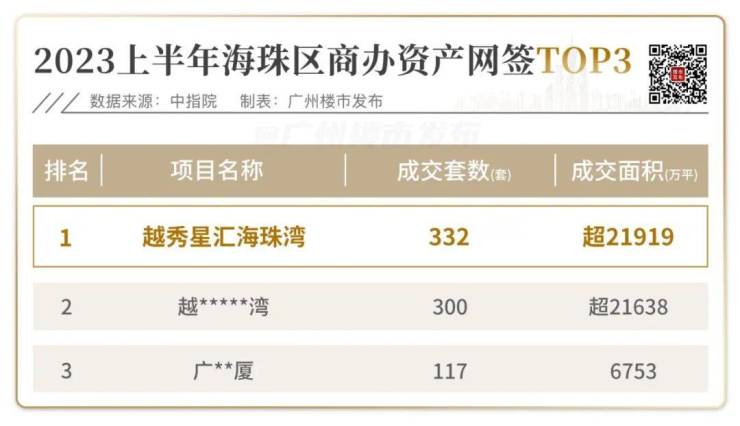 比如今年上半年海珠商办成交TOP3项目中,前2名都是核心地段适用性更广的类型。