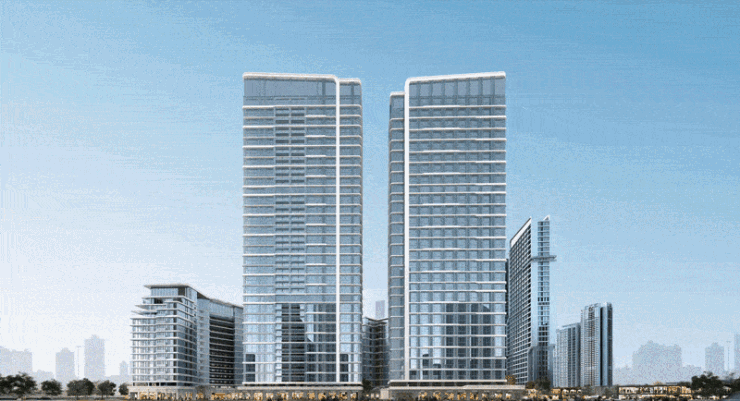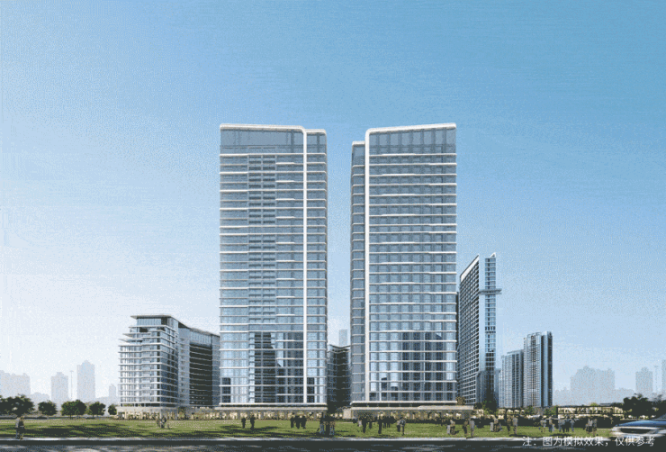 外立面覆盖大面积Low-e玻璃为底色凸显品质感,楼栋棱角以柔线勾勒,横竖直线彰显秩序。