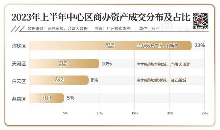 其二,商办成交流向确定性更高的中心区,海珠市占率23%。