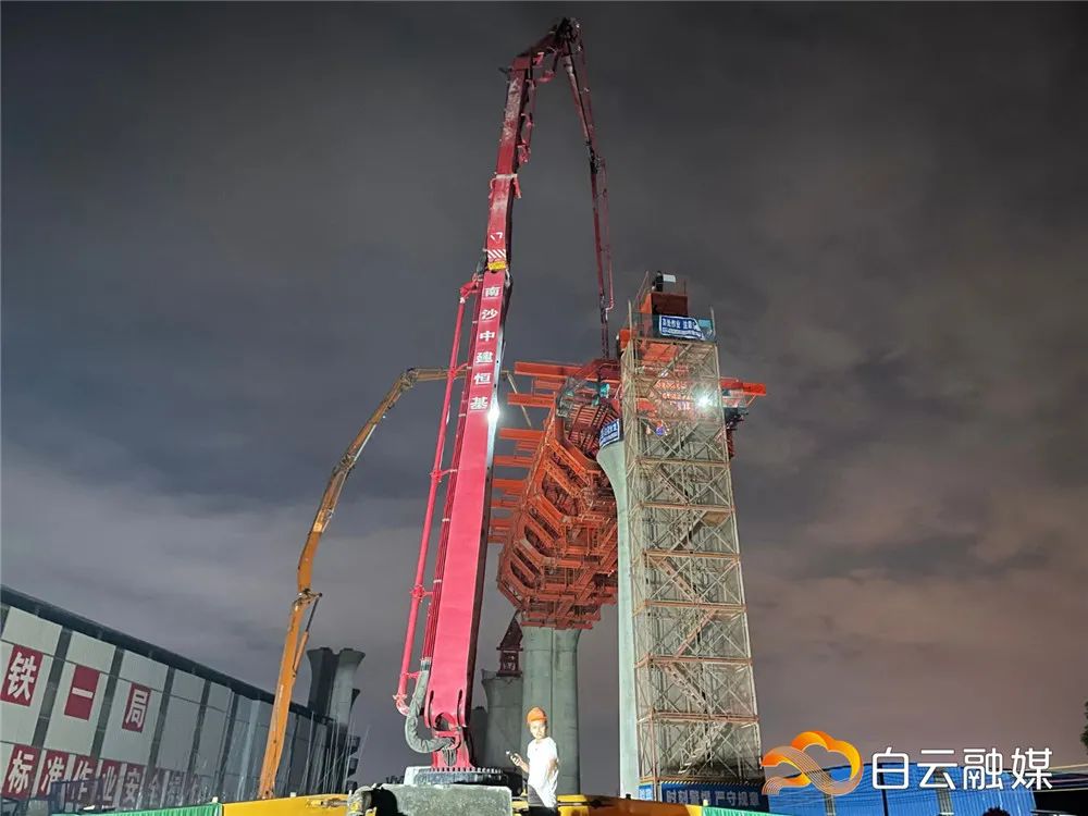 10月31日凌晨4时,随着最后一方混凝土顺利浇筑,由中铁一局承建的广清城际跨新街河特大桥-右线桥首孔移动模架现浇梁圆满完成浇筑。