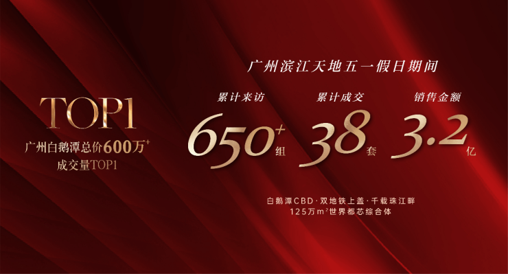 借势此次商业启新活动,广州滨江天地·璇湾B区D栋加推,凭借125万m²世界都芯综合体超级底盘、珠江畔270°城·园·塔C位观景视野、中信泰富不变的高端品质基因,五一期间,共吸引营销中心到访客户650组,五天销售38套,销售金额3.2亿元,登冠白鹅潭600万+级项目成交量TOP1,实力使燃人气如潮!