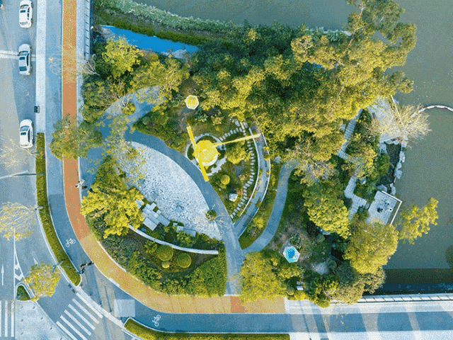 穿过水景,漫步林荫平台,每一步都在风景中穿行;