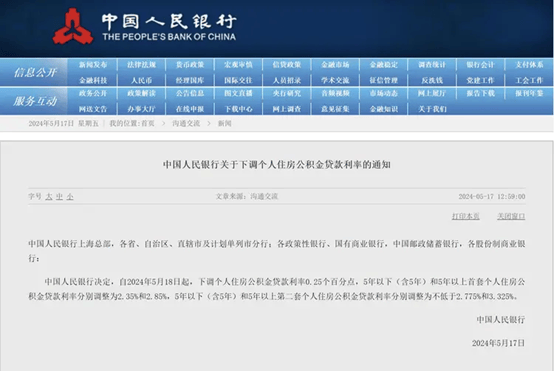 5月17日,中国人民银行、国家金融监督管理总局发布通知。通知提出,对于贷款购买商品住房的居民家庭,首套住房商业性个人住房贷款最低首付款比例调整为不低于15%,二套住房商业性个人住房贷款最低首付款比例调整为不低于25%。在此基础上,中国人民银行各省级分行、国家金融监督管理总局各派出机构根据城市政府调控要求,按照因城施策原则,自主确定辖区各城市首套和二套住房商业性个人住房贷款最低首付款比例下限。