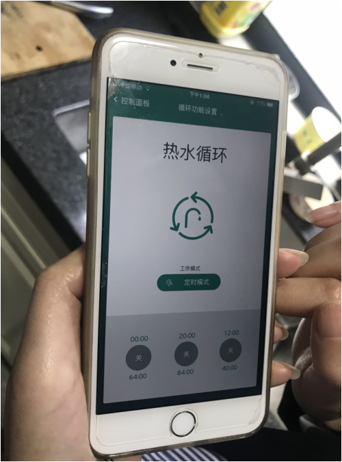 l 手动模式:用户表示现在自己一般就用手动模式,全家人手机里也都装了这个APP,谁要洗澡了就自己手机打开循环一次,一般也就2分钟左右就循环结束了,节水、节气又节电。