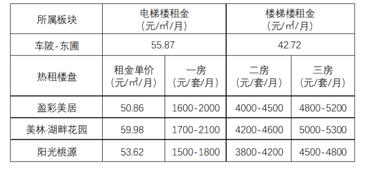 三溪站乘地铁至珠江新城站约20分钟,属天河区车陂-东圃板块。7月,车陂-东圃板块电梯楼与楼梯楼租金分别为55.87元/平方米/月与42.72元/平方米/月。