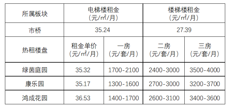 市桥站乘地铁至珠江新城站约30分钟,属番禺区市桥板块。7月,市桥板块电梯楼与楼梯楼租金分别为35.24元/平方米/月与27.39元/平方米/月。