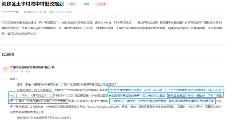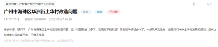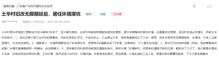 在人民网“领导留言板”上,关于土华村旧改方面的问题还有不少,均提及其推进进度缓慢。在官方的回复中,早有提及