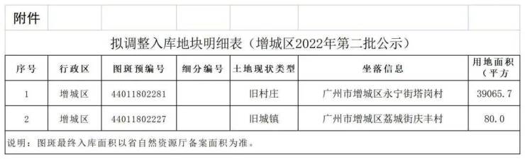 按照《广东省“三旧”改造标图入库和用地报批工作指引(2021年版)》(粤自然资函〔2021〕935 号)等有关文件规定,对广州市增城区2022年第二批“三旧”改造地块标图建库动态调整材料进行了审查,现对拟入库地块予以公示。