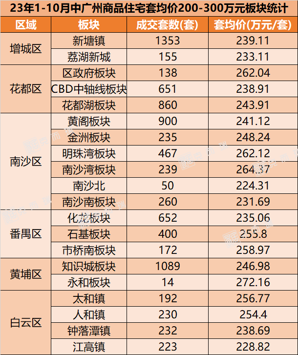 另外,该总价段共有3个板块今年1-10月中成交套数超过2000套,分别是增城永宁街道、朱村街道以及从化街口板块。