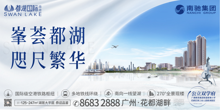 南驰·都湖国际位于广州空港经济区、亚太枢纽广州北站TOD和中轴CBD三大经济圈核心区域,座落滨水新城C位。作为少有南望花都湖的城央湖居大盘,配置了广东广雅教育集团联盟校公立都雅小学(已开学)、市一级公立花都区第三幼儿园都湖园区。享4A景区花都湖公园,5.2万方叠水园林景观。