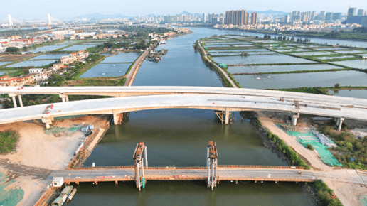 南中高速全线共设8座连续刚构桥梁,主跨跨径从60米到150米不等,建设点散、管控难度大。广州交投集团瞄准旱季施工黄金窗口期,顺利实现全线连续刚构桥梁全部合龙,提前完成旱季施工期主要工程建设计划。