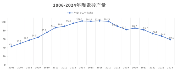 4月10日,中国建筑卫生陶瓷协会发布了《2024年全国建筑陶瓷、卫生洁具统计数据》:2024年,全国瓷砖产量为59.1亿㎡,同比下降12.18%。
