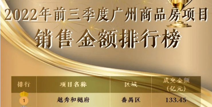 在克而瑞早前公布的一组数据中,该项目在今年前三季度成交金额高达133.45亿元,为广州少有揽金破百亿的现象级神盘!