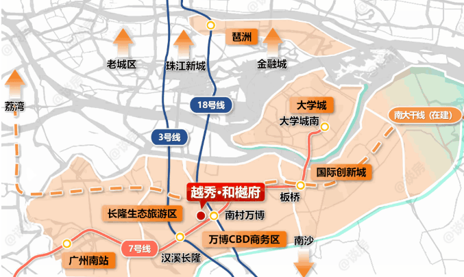 项目所在地万博CBD的价值已经无需赘述。千亿万博,拥有10座以上150m+高楼、番禺天河城、万达广场、广晟万博城、四海城等商业综合体汇聚。3号线/7号线/18号线三地铁汇聚,南大干线在旁,交通四通八达。