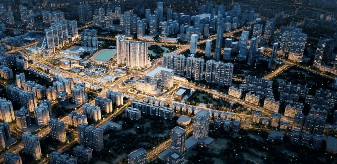 项目建面约200万平,除了住宅产品之外,还融合了酒店、办公、养老、商业、会所为一身,是一个多功能的综合住区。