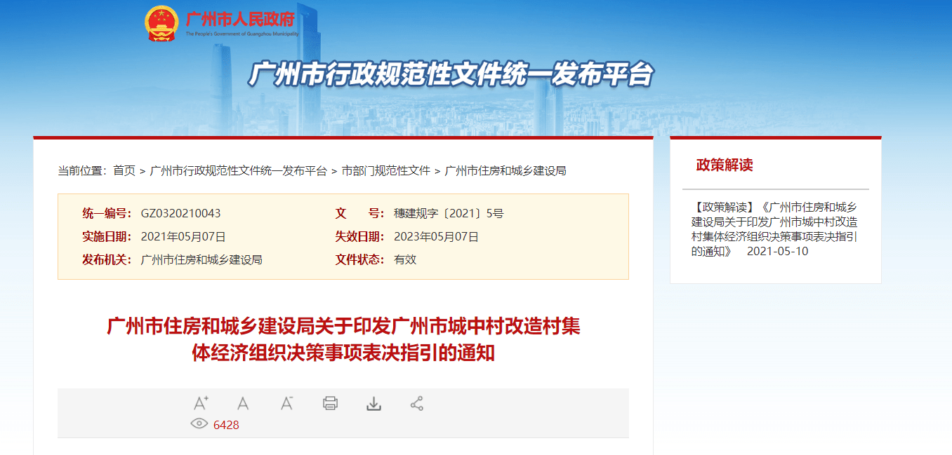 而刚刚, 广州市住房和城乡建设局发布了对《广州市住房和城乡建设局关于印发广州市城中村改造村集体经济组织决策事项表决指引的通知》(以下简称《指引》)的政策解读。