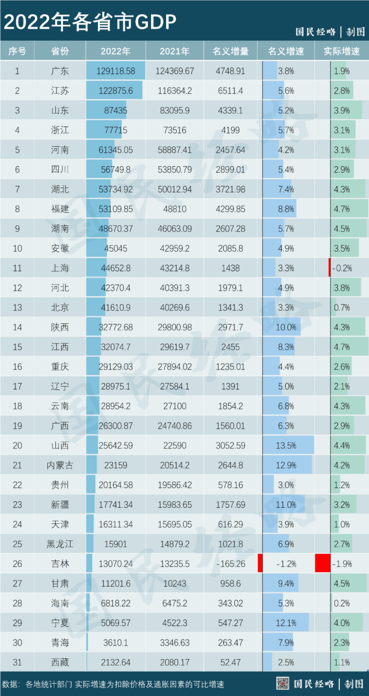 同样是疫情,让上海、吉林两个省份,在改革开放以来首次出现负增长。海南逼近零增长,北京低于1%,向来以高增速著称的贵州、西藏也回落到1%左右。