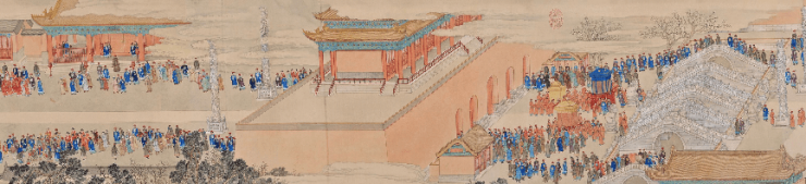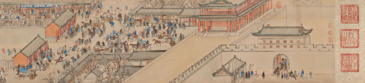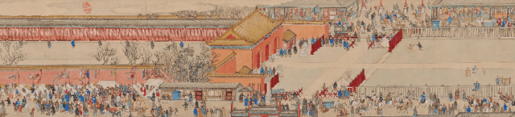 国宝名卷《盛世迎祥·西域献礼图》是乾隆时期清朝宫廷纪实绘画之佳作,由宫廷画家徐扬所绘。画卷全长达18.65米,人物超过8000人,记载入画有50余个国家,详细描绘了乾隆二十五年正月从天安门至午门的庆典场面,着重展示了大清门到正阳门之商业繁荣、各国来华文化交流之盛况、皇家仪仗气势之威严三大场景,是乾隆盛世的国家形象纪录片,栩栩如生的呈现了清代北京,把这一个历史重要时刻以画卷的形式永久定格。著名的古代书画鉴定家黄君实先生评价说:“这是一段北京的《清明上河图》。”