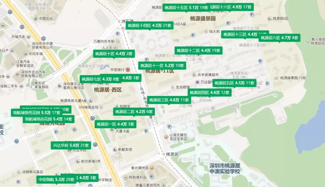 上图:离城市中心15公里,桃源居一带,4万多,5万多。深圳离城市中心15公里的房价,按4.7万/平方。