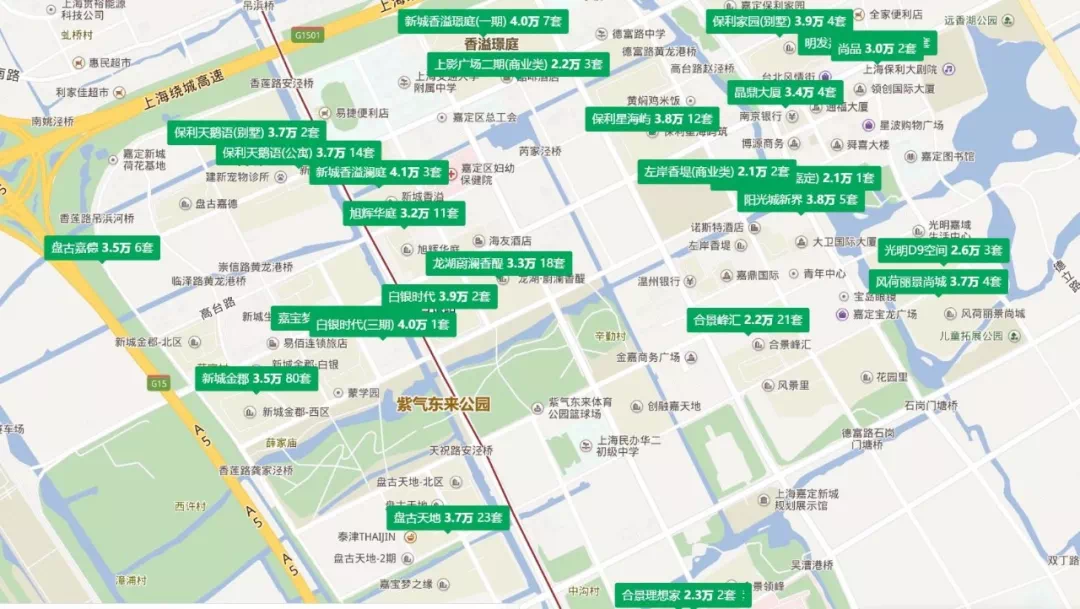 上海离城市中心30公里,已经到了绕城高速了,紫气东来公园附近。