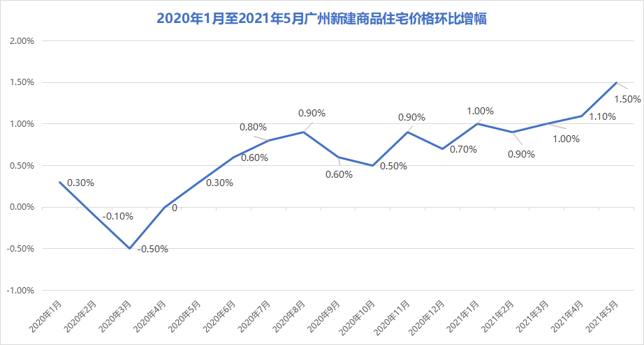 此前,国家统计局较新公布了5月全国70个大中城市商品住宅销售价格变动情况,广州表现依旧亮眼,新房价格环比上涨1.5%。