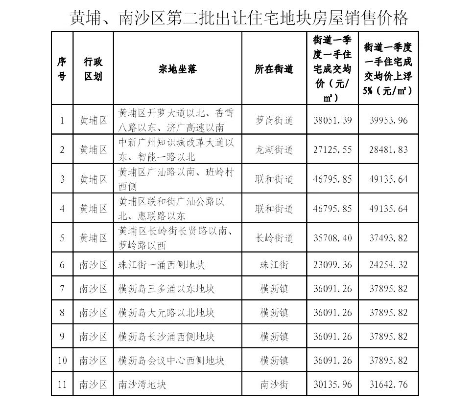 2)第二批黄埔、南沙区地块执行“限房价、竞地价”,房价不超过地块所在区域2021年一季度一手住宅成交均价上浮5%。