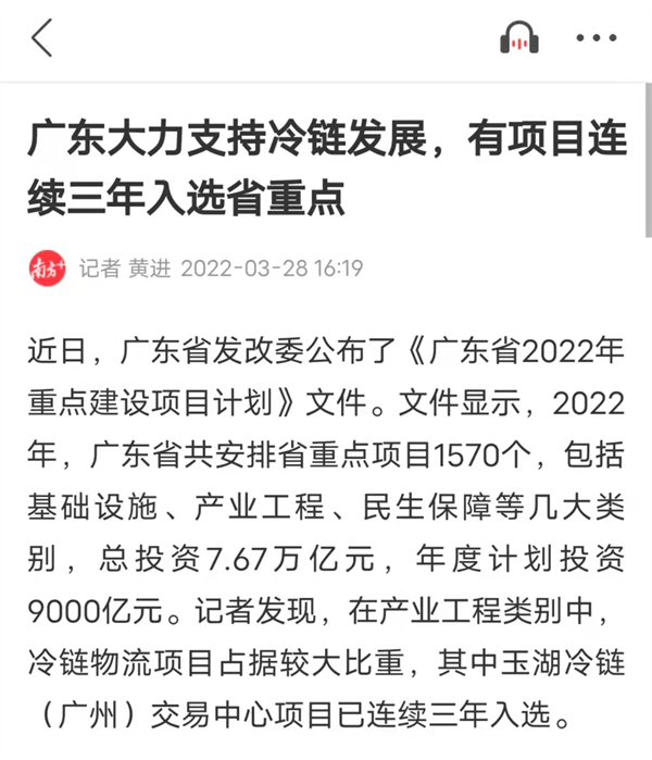 南方日报:广东大力支持冷链发展,有项目连续三年入选省重点