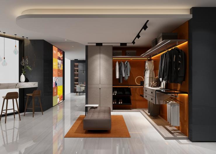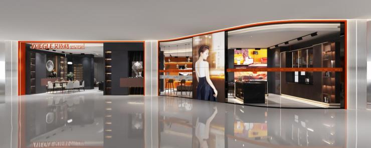 告别店面传统摆放产品的形式,广州居然之家艾依格体验店的设计可谓别出心裁。店面外观以橙色为主基调,灰色为辅设计;搭配透明玻璃橱窗,由外望里,即可一览店面摆设,通透无疑;大屏幕轮播的多款新品,将极简轻奢、新中式、简欧、现代简约等当下流行风格一一呈现,展现出一种时尚态度和生活品味。