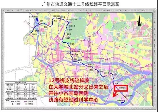 在本次招标中,12号线在大城北开出支线,大致往南延伸,在大学城北站分叉出来之后,开往小谷围岛西侧,意味着线路有望经过科学中心。