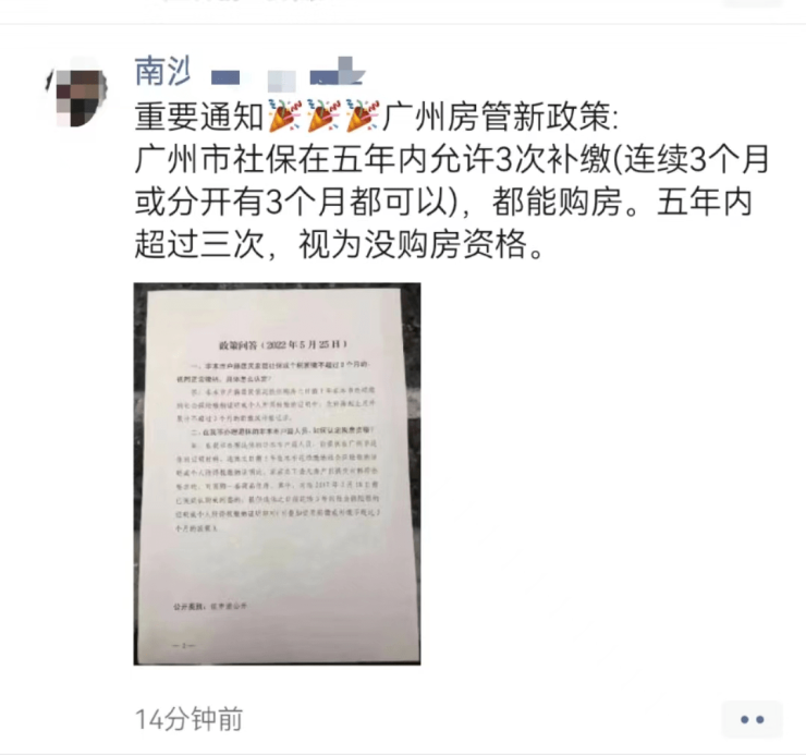 今日,朋友圈刷屏番禺房管新政策:广州市社保在五年内允许3次补缴(连续3个月或分开有3个月都可以)都能购房。