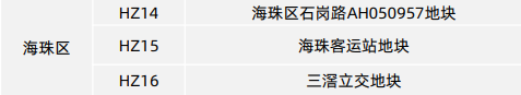 海珠区也有3宗住宅地块被提及,分别为石岗路AH050957地块、海珠客运站地块、三滘立交地块。