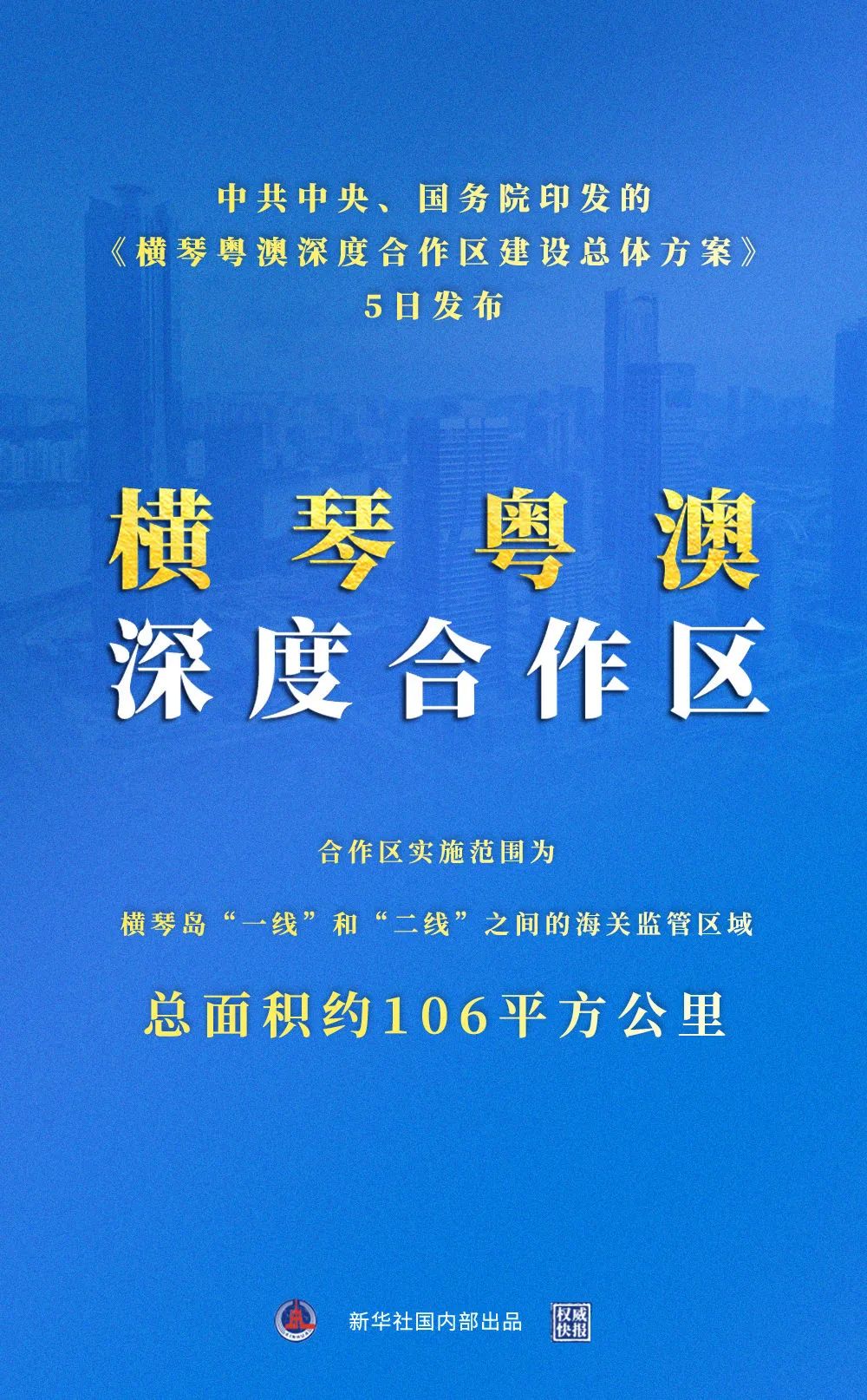 9月5日,中共中央、国务院印发了《横琴粤澳深度合作区建设总体方案》,并发出通知,要求各地区各部门结合实际认真贯彻落实。