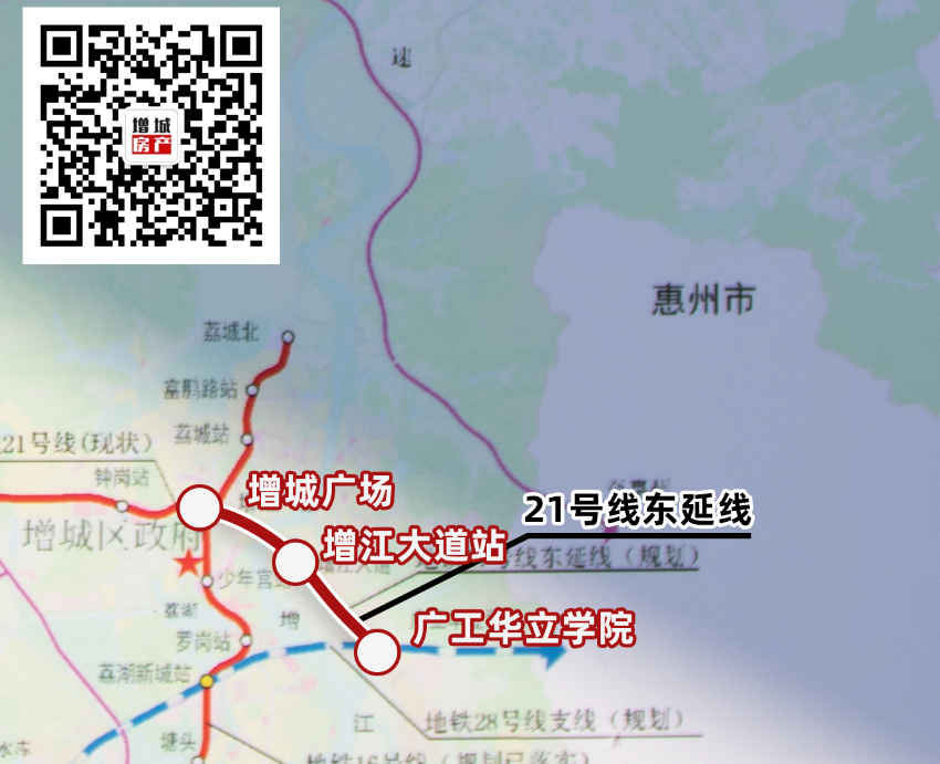 此外,21号线东延线也公布了增江大道站,以及与28号线支线换乘的广工华立学院站。