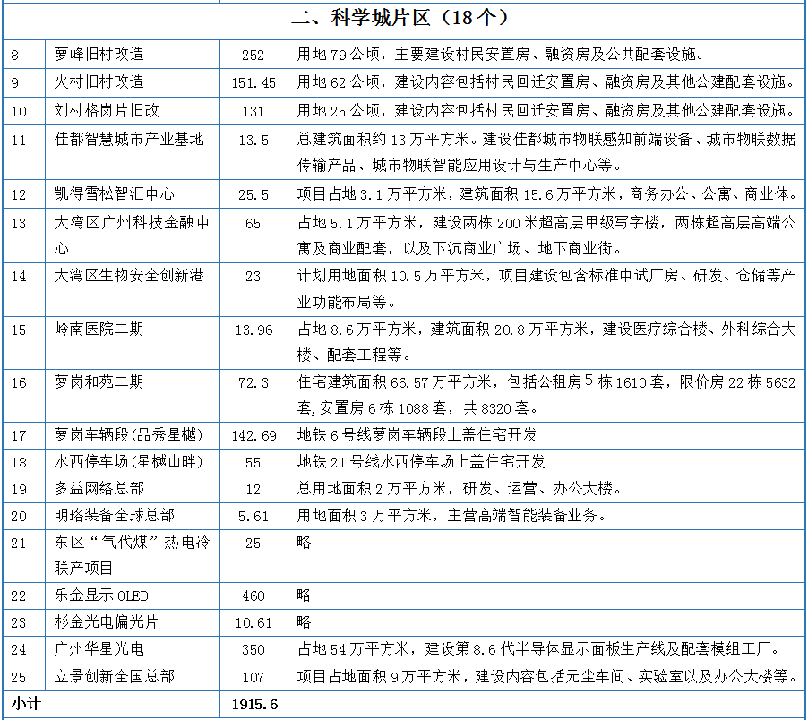 已相对成熟的科学城片区,继续锦上添花,优化提升,获得的项目和资金量也不少。