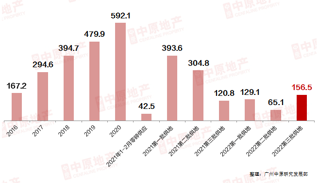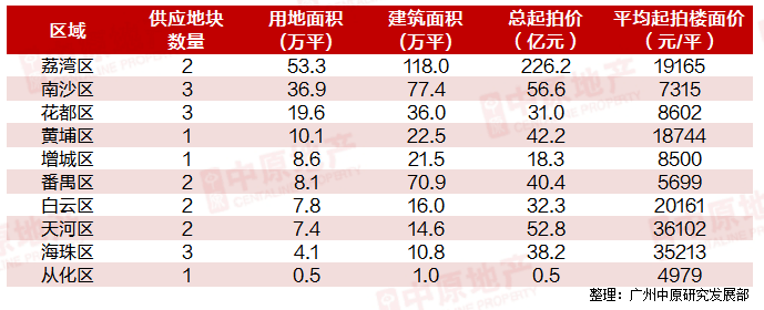 本轮供地为广州2022年三轮集中供地中,供地宗数、总用地面积、总起拍价之最;
