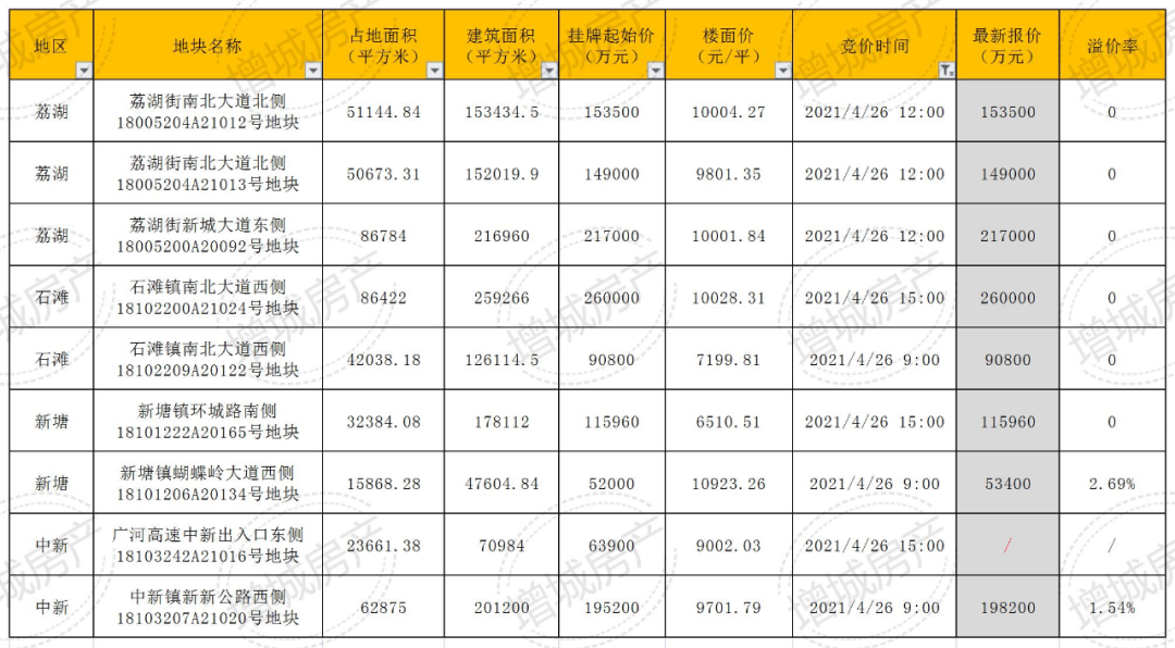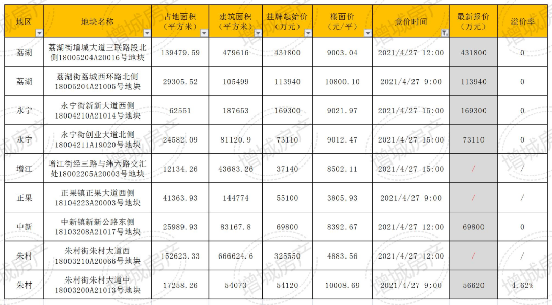 4月27日增城拍地一览表下面来看看这18宗地的挂牌起始价和楼面价情况: