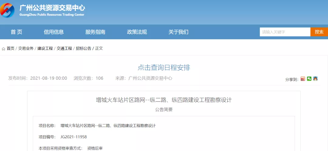 再投8.26亿!新建两条道路!增城火车站路网招标!
